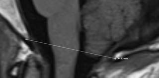 This scan was taken approximately six months after Diane’s treatment. The cerebral tonsil is now above the radiographic line that comes from the base of the skull, creating less compression on the brain stem.